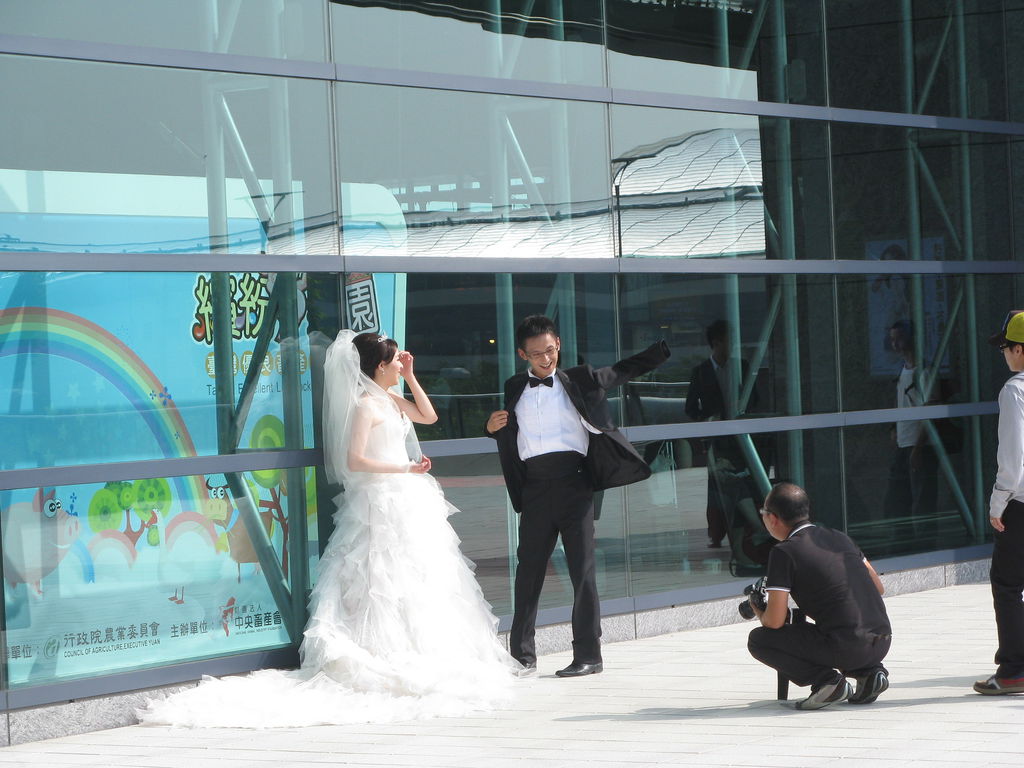高鐵台中站外拍婚紗的新人