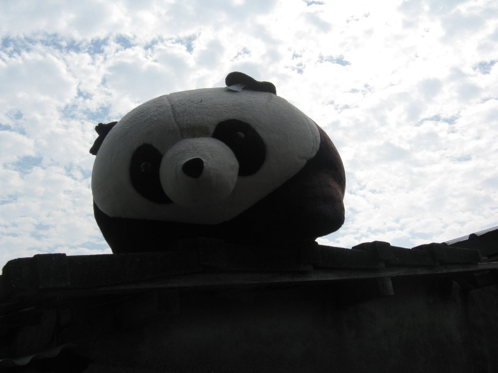 貓熊在屋頂