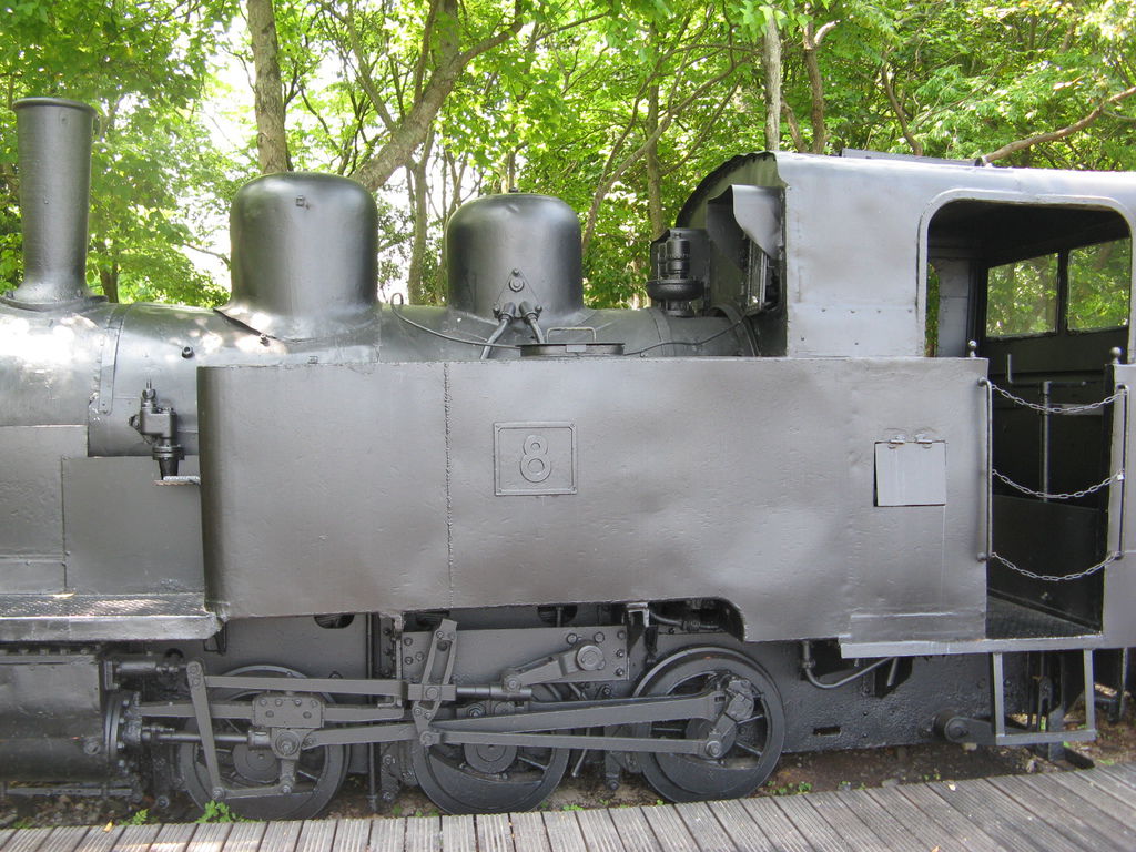 林場內陳列的 8 號機車頭