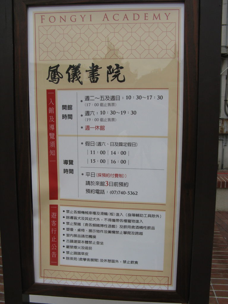 鳳儀書院開放時間表