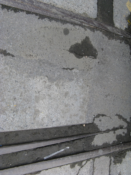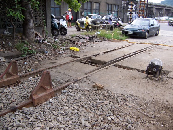 廢線一角。軌尖就地埋入柏油地面了,轉轍器已不在。